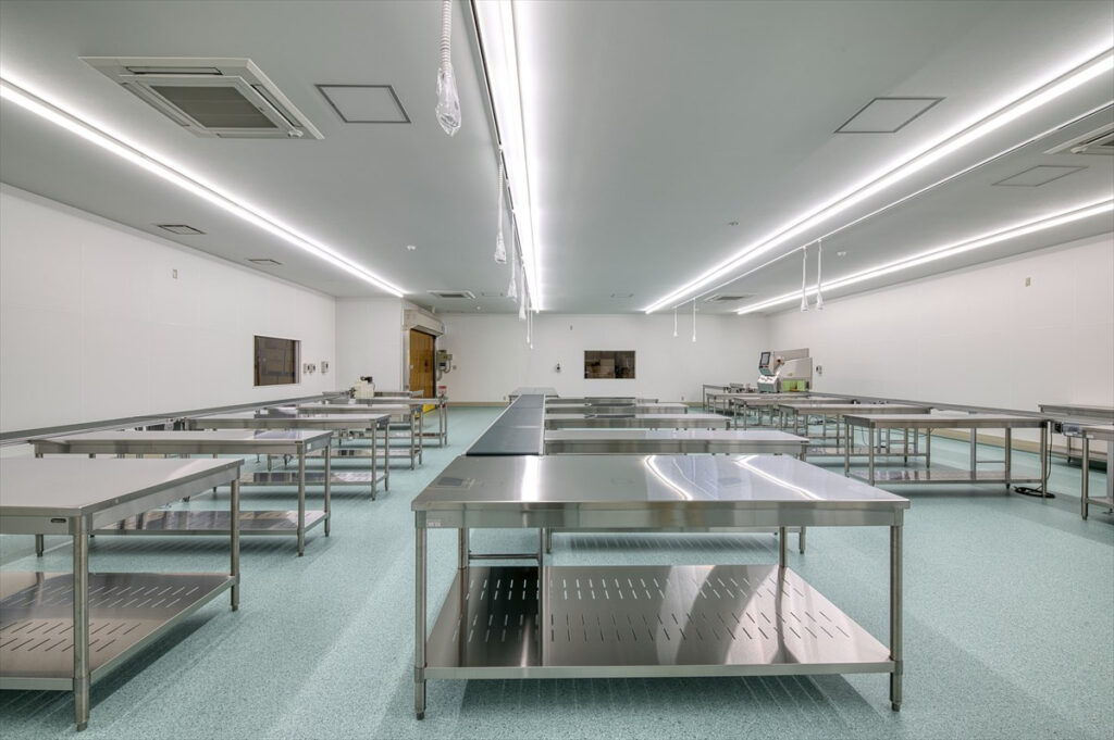 加工室はJIS規格に準拠した照度設計となっており、1,000ルクス以上の明るさを確保