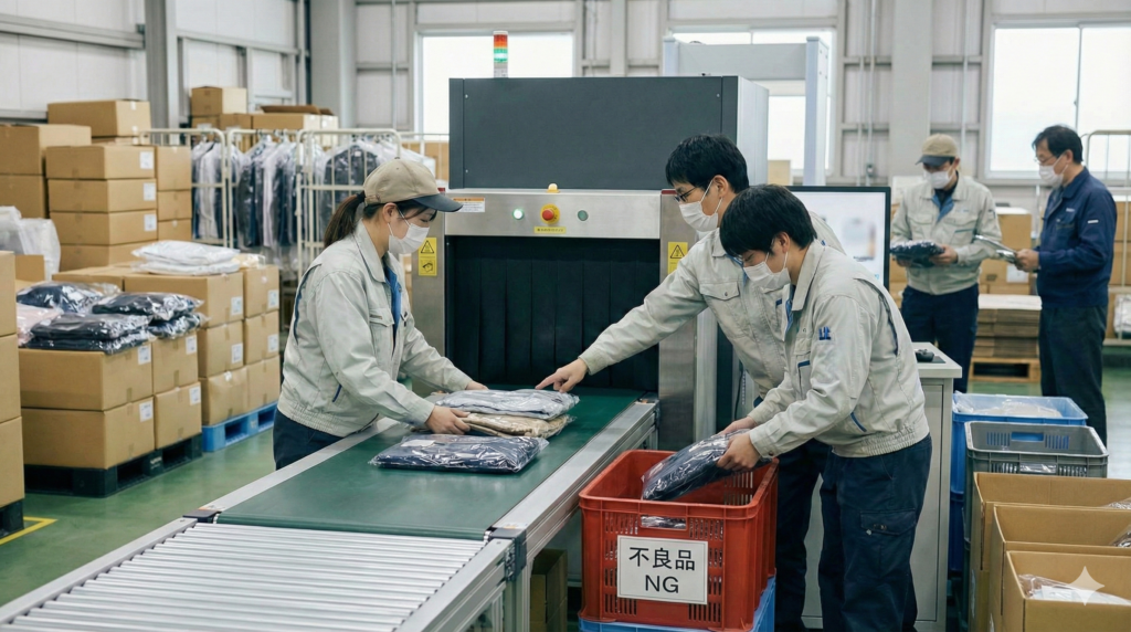 衣料ウェアの大口案件で、外観では判別が難しい内部不良の可能性が指摘され、通常の目視検査だけでは品質保証が難しい状況が発生しました。
